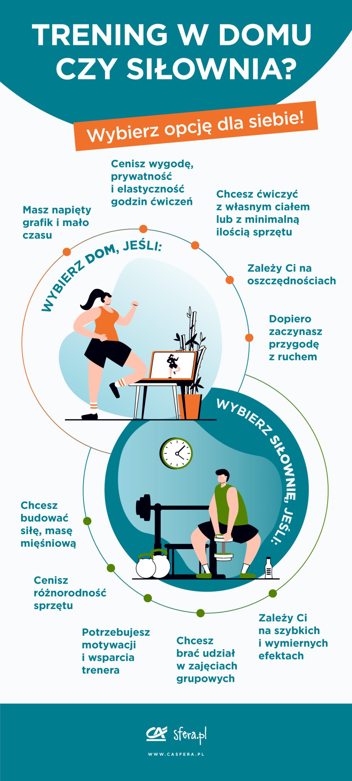 Nie ma jednej odpowiedzi dla wszystkich. Jeśli szukasz prostoty, elastyczności i oszczędności, dom jest świetną opcją. Jeśli priorytetem jest atmosfera, budowanie siły albo profesjonalne wsparcie – siłownia ma tutaj przewagę. Wiele osób korzysta z obu opcji, na przykład kilka dni w tygodniu trenuje w domu, a raz na tydzień odwiedza siłownię. To bardzo rozsądny kompromis.